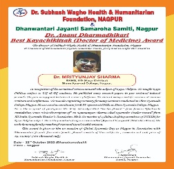 | 3 | 2022, Hotel Regenta Nagpur | Dr. Subhash Waghe Foundation | Dr. Anant Dharmadhikari - Best Kayachikitsak Award | Dr. Mrutyunjay Sharma (Nagpur) |  |  |  |