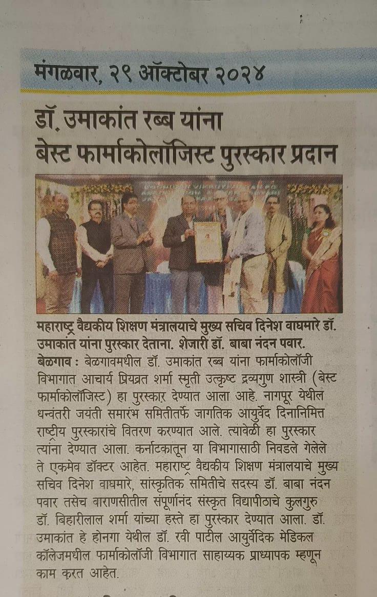 | 4 | 2024, Amrit Bhavan Nagpur | Dr. Subhash Waghe Foundation | Vd. Priyavrat Sharma Memorial - Best Dravyaguna-shastri Award | Dr. Umakant Rabb (Belgavi) |  |  |  |