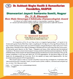 | 4 | 2022, Hotel Regenta Nagpur | Dr. Subhash Waghe Foundation | Dr. N. R. Bhangale - Best Male Streerog Chikitsak Award | Dr. Mandar Ranade (Pune) |  |  |  |