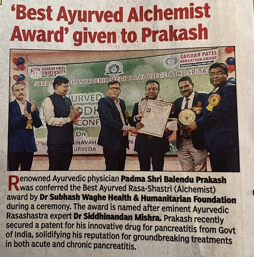 | 5 | 2024, Sardar Patel University Balaghat | Dr. Subhash Waghe Foundation | Vd. Siddhinandan Mishra - Best Rasashastri Award | Vd. Balendu Prakash (Dehardun) |  |  |  |