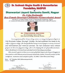 | 5 | 2022, Hotel Regenta Nagpur | Dr. Subhash Waghe Foundation | Dr. Usha Deshmukh - Best Female Streerog Chikitsak Award | Dr. Pratiksha Rathod (Amravati) |  |  |  |