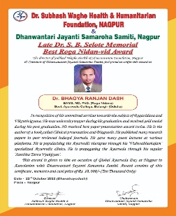 | 6 | 2022, Hotel Regenta Nagpur | Dr. Subhash Waghe Foundation | Dr. S. B. Selote Memorial - Best Nidan Vid Award | Dr. Bhagya Ranjan Dash (Balangir) |  |  |  |
